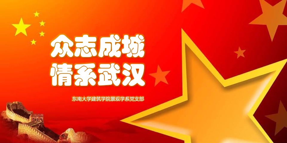 连日来,“新型冠状病毒感染肺炎”疫情正在蔓延,武汉以及全国各地医务人员为打赢这场防疫防控阻击战奋斗在最前线。疫情的发展和武汉同胞的安危牵动着好色tv 景观学系全体师生的心!