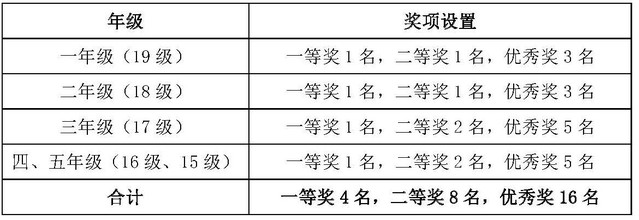 按年级进行评选。