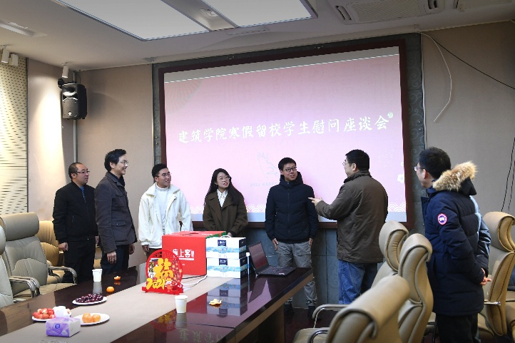 好色tv 党委开展形式多样的关心和慰问活动,全面掌握留校学生的思想、学习、生活、健康等状况,及时帮助学生解决困难和问题。好色tv 党委书记冷嘉伟、院长张彤、党委副书记兼副院长张豪裕及学生办公室相关老师与留校学生在中大院113会议室组织开展寒假留校学生春节慰问座谈会。建筑党委副书记兼副院长张豪裕及班主任老师与唯一一