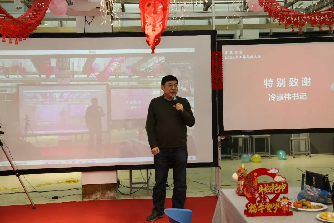 最后,冷嘉伟书记做总结发言,感谢奋斗在各条工作战线的教职工们一年来为学院所作的贡献,祝愿大家新年万事如意,事业百尺竿头更进一步,祝愿学院有更加长远的发展。新年将至,祝愿2021年祥和昌盛、国泰民安!所有的建院人身体健康,幸福美满!