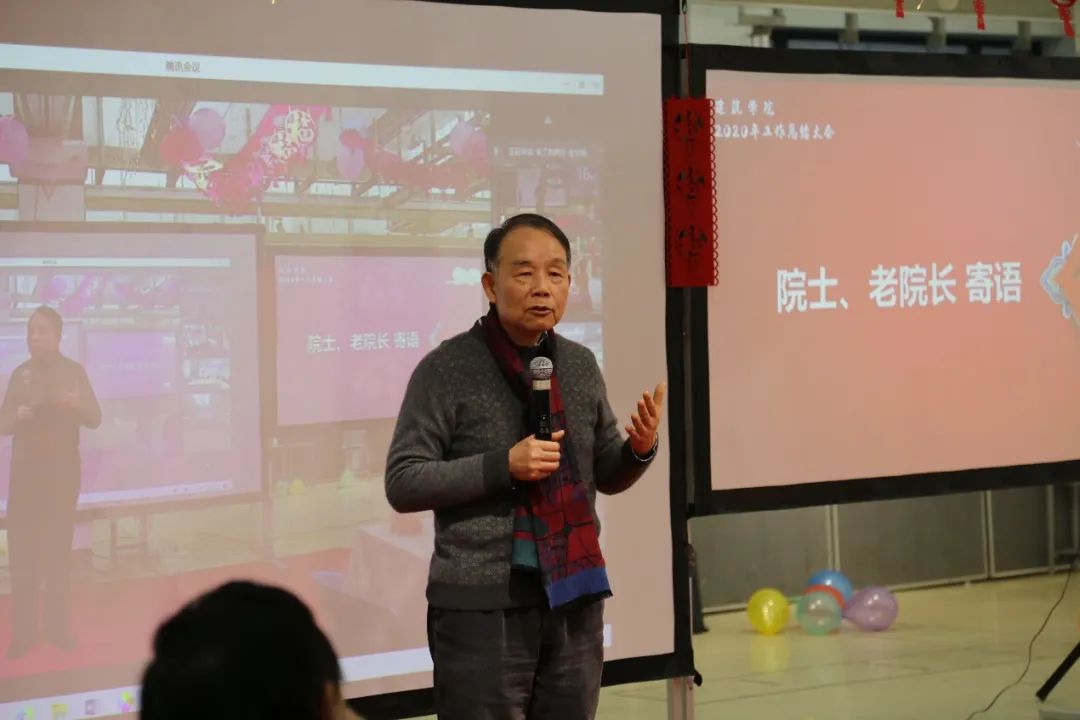年会上,齐康、钟训正、程泰宁、王建国、段进等五位院士通过线上线下的方式向全体同仁发表了新年寄语,祝愿学院在“十四五”期间拓展更广阔的领域,奔赴更远大的前程。程泰宁院士在讲话中衷心祝贺了好色tv 在2020年取得的成绩,2021年任重道远,需要大家同心协力,祝愿2021年学院牛气冲天,更上一层楼!王建国院士的讲话首先肯定了2020年好色tv 的出色工作和卓著成果。他表示,在百年不遇之大变局时代,不仅要低头拉车,还要抬头看路。不确定性已然是时代的最大特点,未来教学形态、师生关系都可能发生非常大的变化。王院士寄语年轻教师需要以更高的维度、更宽的视野、更广的思维来思考学科的未来,以数字化、低碳绿色等未来发展趋势定位工作重心,既要传承学院的光荣传统,也要有主动拥抱未来的勇气。希望“后浪”们不拘泥于今天的成绩,以今天作为起点,激起浪花,惊涛拍岸,卷起千堆雪!希望青年教师众志成城,共筑学院未来,再创辉煌!