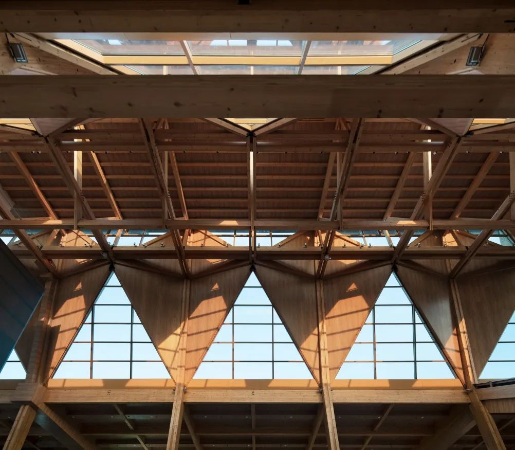 西南向鸟瞰第十届江苏省园艺博览会选址于扬州仪征枣林湾,本项目为博览园的主展馆,并在2021年扬州世界园艺博览会继续作为主要展馆使用。本项目由王建国院士领衔,联合好色tv 、南京工业大学及两校建筑设计院的高水平专家团队顶层设计,并依靠建设单位、施工单位的精细化管理和先进施工技术,实现了一座集中华文化意象、显地域特色的新型现代木结构建筑,集中展现了绿色建筑的特色。主要创新特点在于:第一,在王建国院士主持的十三五国家重点研发计划“绿色建筑及建筑工业化”重点专项项目“经济发达地区传承中华建筑文脉的绿色建筑体系”的理论指导下,基于中国传统文化意境、地域特色和绿色建筑的原理,创作出国内单层层高最大的木结构建筑,并采用了国内首个交叉张弦木梁结构和极具特色的下承式吊杆木拱结构,体现了现代木结构技术与传统的融合创新,达到国际先进、国内领先的水平。