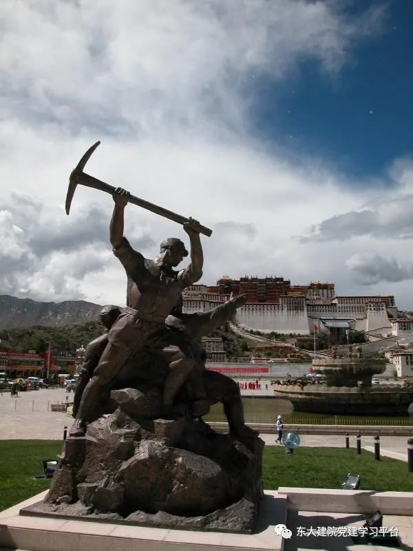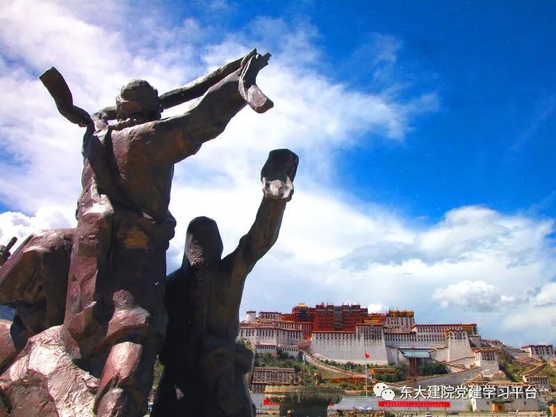 苍天白云下,西藏和平解放纪念碑熠熠生辉,不仅在告诉我们曾经的不易,也在提醒我们要牢牢团结在党中央周围,坚持走正确的道路,以昂扬的斗志和对和平的珍视为基础,发挥出全国各族同胞大团结的无穷力量,建设新中国更加美好的明天!