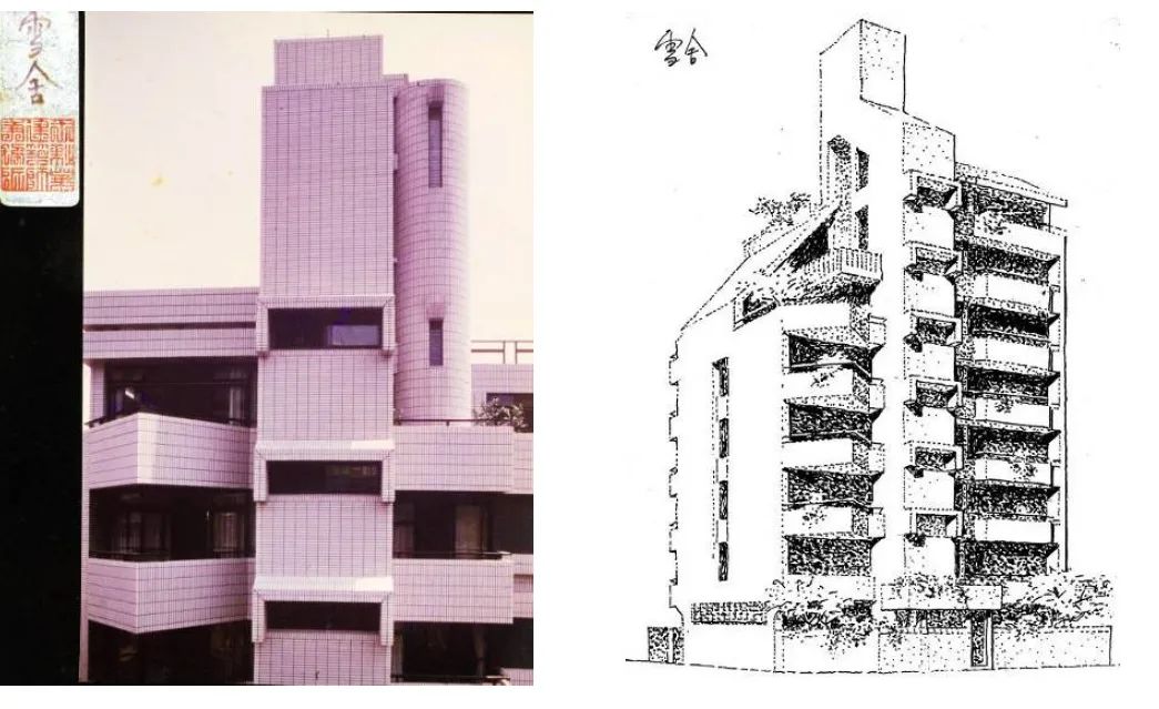 她的台北自宅“雪舍”(1984)根据功能需求的差异,八层的平面布置均不相同,室内空间给人以多样的视觉感受和心理体验;室内外空间交融,跳跃的色彩穿插运用,又增添了热闹、活泼的氛围。同时,细节处理亦十分精彩,例如利用楼梯间栏杆转折处放置灭火器,体现出建筑师对使用功能细致入微的思考。