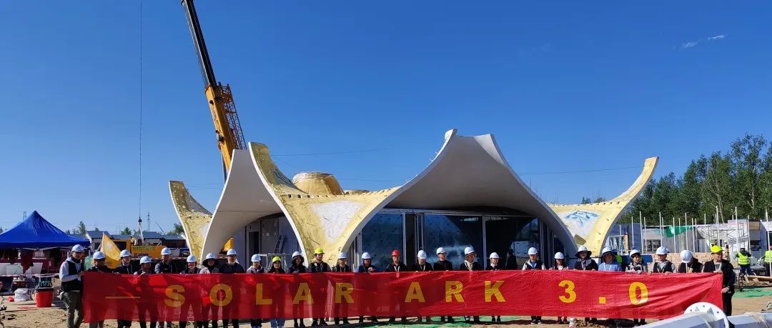 Solar Ark 3.0的建造周期为20天,从8月24日开始建造,计划于9月12日建成并开放。截至2021年8月28日,经过5天的努力,Solar Ark 3.0集结构与造型、技术与艺术为一身的UHPC双曲面壳体结构已完成装配,实现封顶!