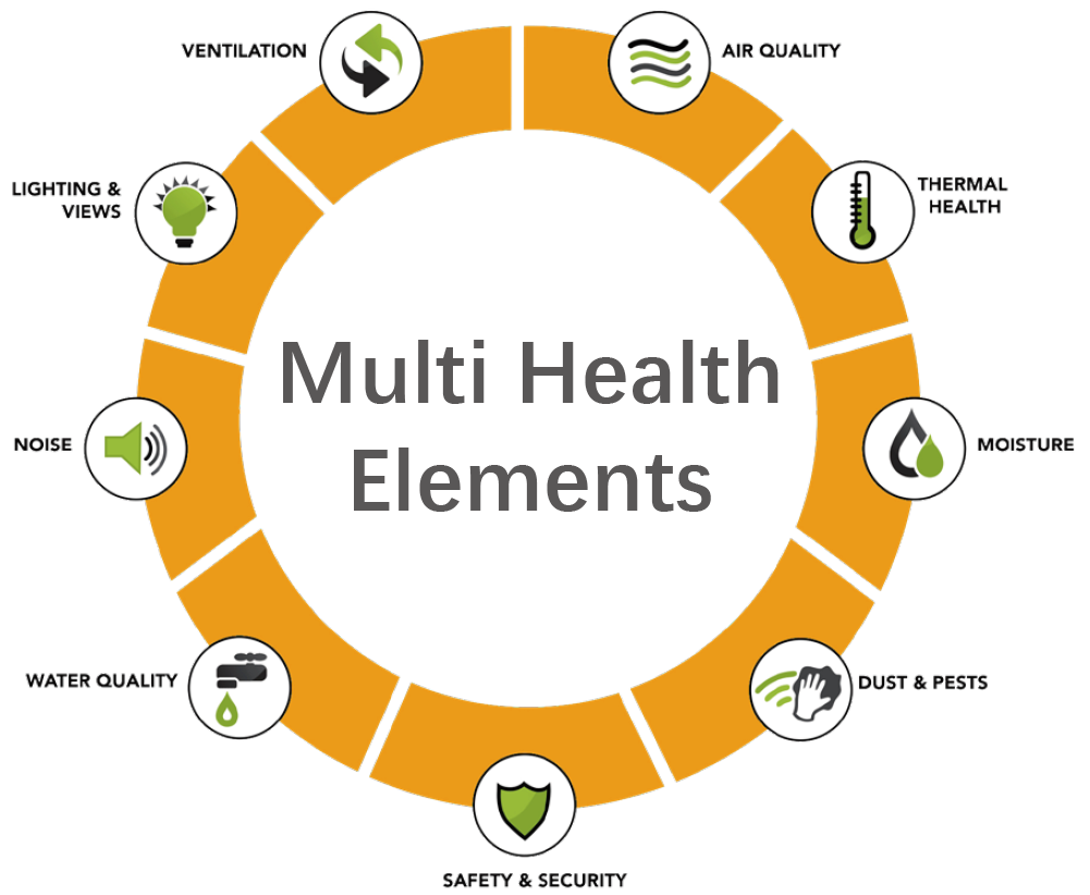 多元健康智能系统以关注用户的健康为目标,通过最新的智能家居技术把各个要素互联起来,实现“呼吸建筑”的智能化、人性化,改善用户的体验,是实现“呼吸建筑”的重要保障。在这方面,我们针对人居环境中的温度、湿度、PM2.5、二氧化碳、甲醛等进行了实时监测,并通过物联网技术将传感器和HVAC设备进行联动,保障室内环境处于健康、舒适的状态,实现建筑对环境的感知、判断和反应。在智能灯光系统方面,配备了无线开关面板,采用EnOcean无线通信协议,可随意调节位置,满足用户自定义,实现自动开灯和远程遥控,增加用户体验的同时也具有节能的控制功能。该系统还具备了能耗监测、安防、娱乐等功能,丰富用户的体验。