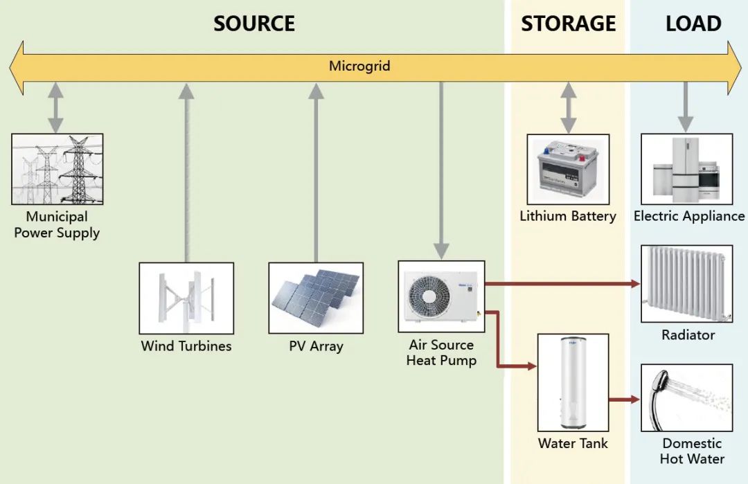 多能互补系统实现了太阳能、风能、空气能的利用。该综合能源系统可以进一步增加系统的整合度,提高新能源利用效率和稳定性。这种技术方案为今后可持续建筑的能源系统提供了一种低碳高效发展的技术路径。风光互补的能源系统弥补了常规光伏系统在晚上或者光照不佳条件下无法发电的弊端,让建筑尽可能地使用所在场地中产生的可再生能源,减少外部电网送电过程中的能源损耗。同时,系统的模拟年产能是建筑耗能的5.2倍,能在大部分时间实现余电上网,减排的同时还具有较高的经济收益。