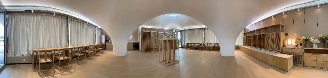 Solar Ark 3.0创造了室内10.8mX10.8m的大空间,并将服务空间置于东侧和西侧,获得南北通透的整体通用空间。通过固碳材料——竹材的运用,利用竹制家具,可以灵活将室内的大空间布置为居住模式、居家模式、聚会模式、展览模式或影院模式等等,实现卧室、餐厅、起居、交流、居家办公、社交活动等多功能住宅的功能。可分可合的家具设计,不仅仅是对我国传统以家具定义空间的新阐释,也是对未来住宅空间使用方式的探索。