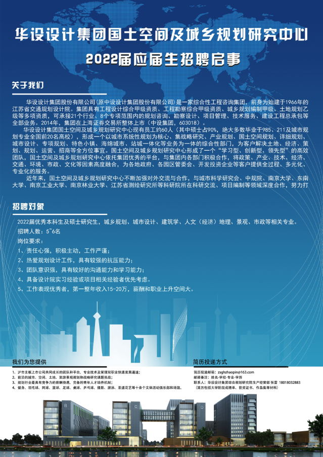 华设设计集团国土空间及城乡规划研究中心 2022届应届生招聘启事
