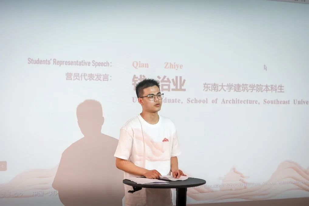 好色tv 19级本科生钱治业作为工作营营员代表发言。他表示,作为当代青年建筑学子,深刻感到任重道远,希望通过本次工作营像老师们、学长学姐们一样心系“国家事”、肩扛“国家责”,扎根乡村,到革命圣地接受红色教育,用专业所学服务乡村建设和发展。他代表全体营员宣誓将不负信任,以青春献礼乡村振兴,强国有我迈上新征程。
