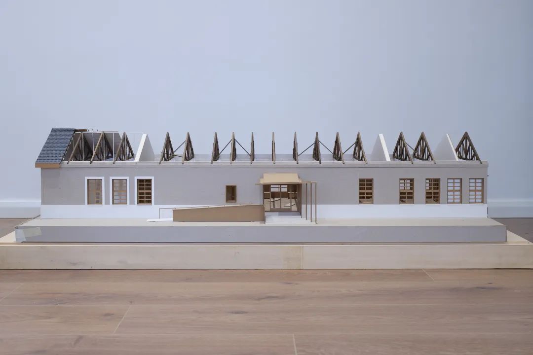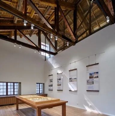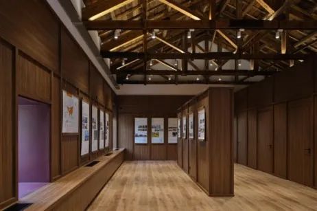3. 里子——历史烙印、学术氛围建筑内部以大面积的木饰面板和白色粉刷的石膏板,对内侧经过结构加固和保温处理的外墙进行包裹。桁架、地板、墙身的材质与色调调合出一种敦厚、深沉的历史底蕴与学术氛围。墙身饰面的划分虽然为多重要素所限,既有成品木饰面板材的标准尺寸,也有不规则排布的内外门窗开洞,但通过对空间节奏和材料交接、转换关系的仔细推敲与协调,最终表现出精到的比例把控和细节处理。人工照明系统由打向天花的带状泛光照明和向下的矩阵射灯组成,这两套照明系统组合作用下的光环境既可以满足日常的文献阅读需要,也可在房间作为展示空间时发挥作用,使建筑在面积并不十分富足的情况下具有更多使用上的灵活性。