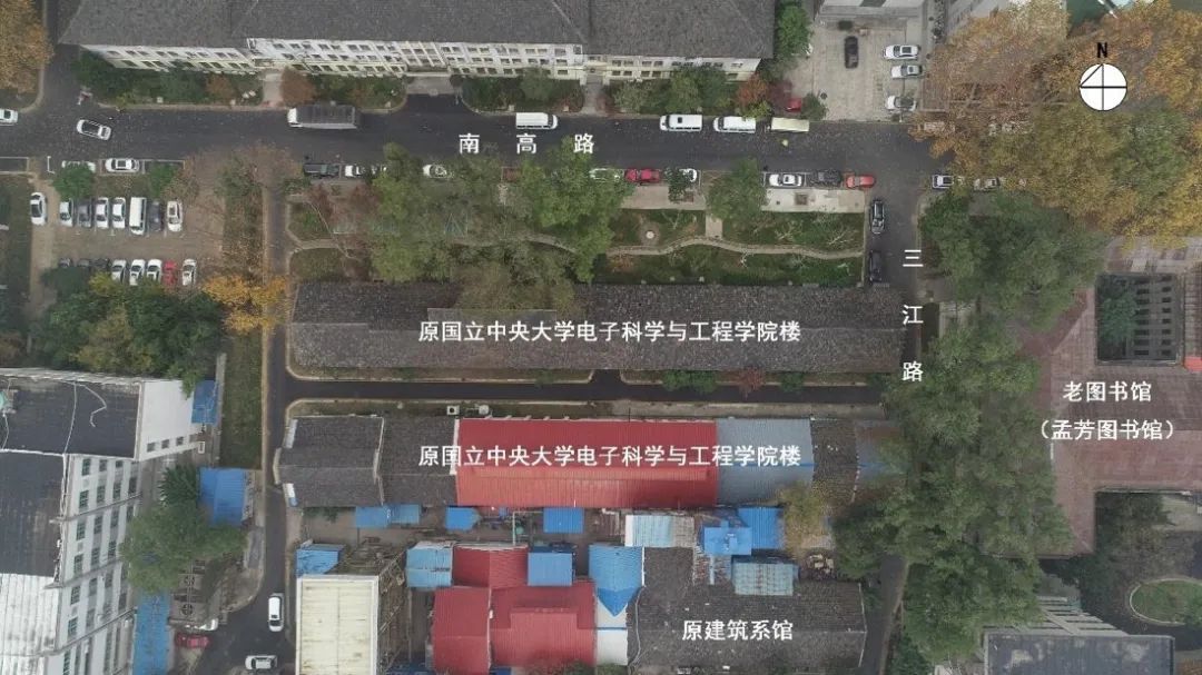 侧平房一共三排,毗邻老图书馆,与南高院隔路相望。这组建筑建成于1939年,1948年曾经修复,其后经多次改造,但沿路一排也就是如今改造为亚洲建筑档案中心的一幢,仍大体保持原貌。