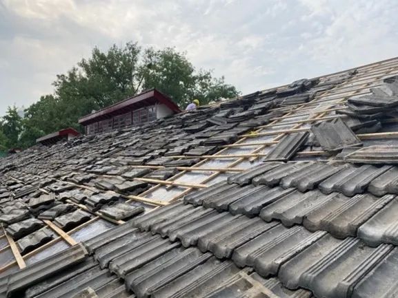 ▲屋面板瓦铺设