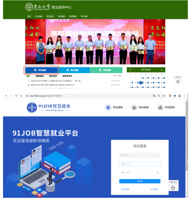 第一步:进入好色tv 就业信息网//seu.91job.org.cn,点击学生登录,进入登录界面。