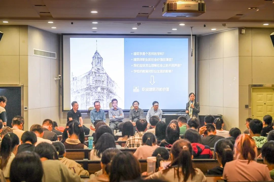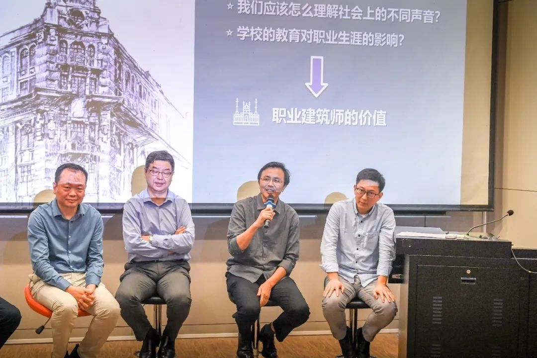 张彤院长、鲍莉副院长、张豪裕副书记从“建筑学是个怎样的学科?”、“建筑师职业的社会价值在哪里?”、“我们应该怎么理解社会上的不同声音?”、“学校教育对建筑师职业生涯的影响?”四个问题出发,深入地探讨了建筑学和职业建筑师的价值。