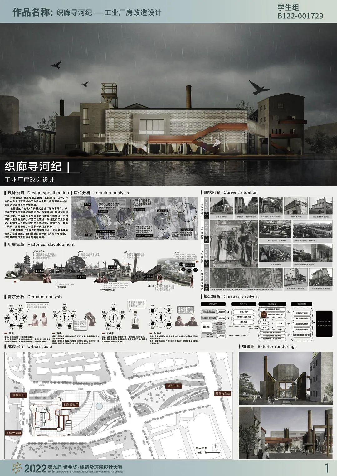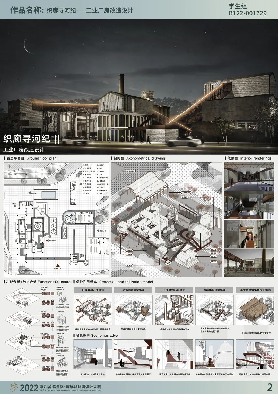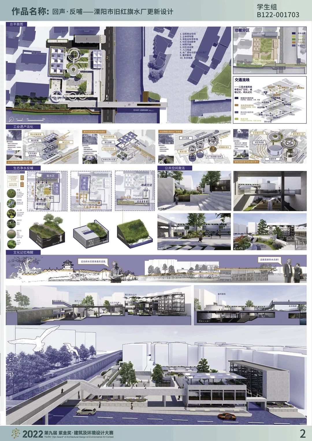 学生组专业评委经过激烈的现场角逐,我院参赛队伍取得2金2铜的优异成绩。其中《船影重重系古今——淮安河西造船厂更新改造设计》、《漂流集市——京杭运河邵伯船闸锚地复合更新计划》获得金奖;《回声·反哺——溧阳市旧红旗水厂更新设计》、《织廊寻河纪——工业厂房改造设计》获得铜奖。