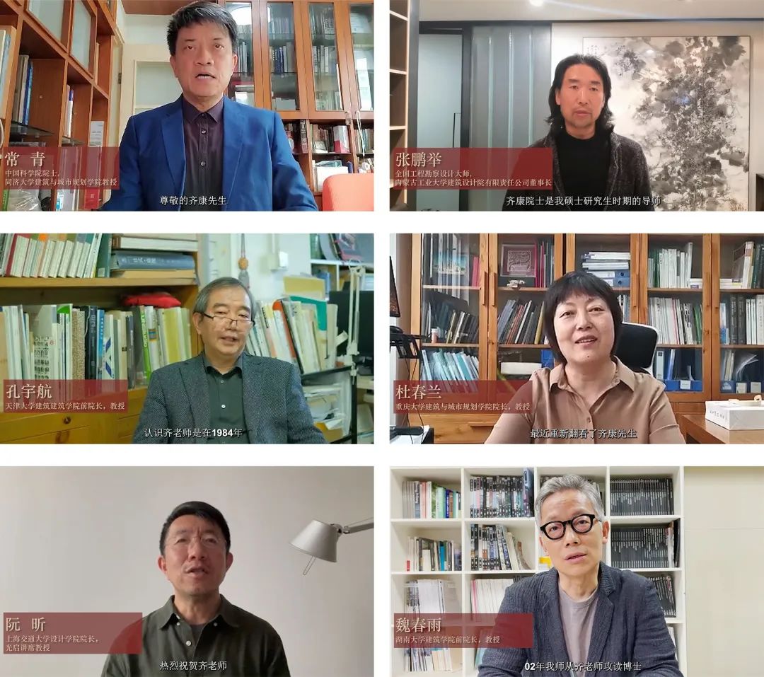 常青院士、张鹏举大师、孔宇航教授、杜春兰教授、阮昕教授、魏春雨教授通过视频回顾了在齐先生身边和门下的求学和成长,交流了对齐先生学术思想的感悟。与会的各位学者和专家都从自己在齐先生身边工作和学习的经历出发,对齐先生的思想和实践,以及对自己的影响和对学科、行业及社会的贡献进行了回顾和交流。