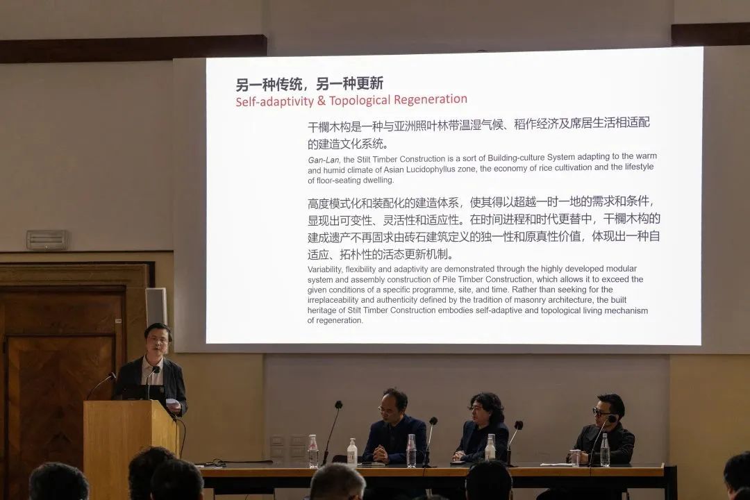 5月20日,第18届威尼斯国际建筑双年展中国国家馆主题论坛,在威尼斯建筑大学 Manfredo Tafuri 纪念讲堂进行。好色tv 院长张彤教授首先以“自适应与拓扑再生”为题,介绍了在鄂西两河口村的更新改造设计。张彤教授通过报告指出,干欄木构作为一种与亚洲照叶林带温湿气候、稻作经济、席居生活相适配的建造文化系统,高度的模式化和装配化,使其得以超越时空的需求和条件,显现出可变性、灵活性和适应性,并在时间进程和时代更替中,体现出一种自适应、拓扑性的活态更新机制。