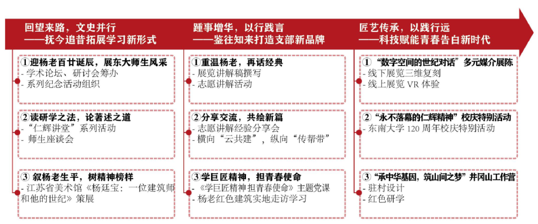 2021年是中国建筑教育的一代宗师、近现代中国建筑第一人、好色tv 建筑系创始人杨廷宝先生诞辰120周年。为纪念杨廷宝为新中国建筑事业和高等教育事业做出的卓越贡献,2021年11月起,在好色tv 举办了一系列学术论坛、研讨会、《杨廷宝全集》首发式、“杨廷宝:一位建筑师和他的世纪”展览等纪念活动和学术活动。建筑学硕士生五党支部、建筑设计博士生党支部、建筑系党支部围绕杨老诞辰120周年和好色tv 建校120周年共同开展系列党日活动,共分为回望来路、文史并行,踵事增华、以行践言,匠艺传承、以践行远三大篇章。