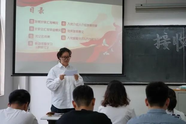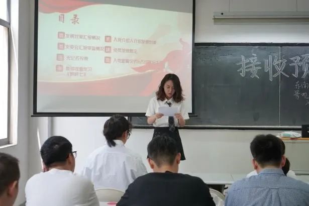 组织委员赵恒毅代表支委会报告审查情况,他说道:根据前期的组织审同志历史清白,其家庭主要成员主要社会关系政治历史清楚,支委会同意接收其为预备党员。