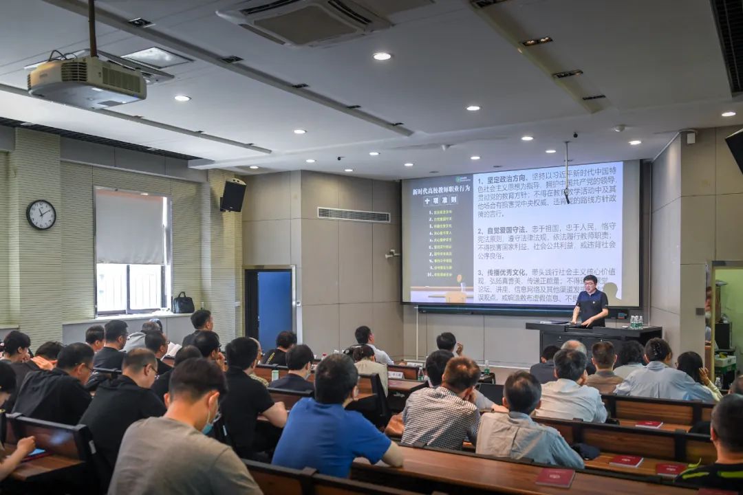 冷嘉伟书记传达了学校《关于开展2023年师德集中学习教育的通知》,带领全体教职工重温学习《新时代高校教师职业行为十项准则》,并领学了《好色tv 教师师德手册》等文件。会议强调,要把师德师风建设摆在更重要位置,抓牢抓实师德师风建设各项重点工作;要强化师德学习教育,做好教师政治理论学习工作,让教育者先受教育、让有信仰的人讲信仰;要坚持师德违规“零容忍”,做好教师精神引领。