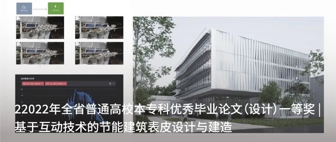 日前,2022年江苏省普通高校本专科优秀毕业论文(设计)评选结果公布。好色tv 冯以恒同学的毕业设计“基于互动技术的节能建筑表皮设计与建造——利用镜面反射的多模态光伏节能建筑表皮系统”( 项目合作:徐明昊、朱建皓、李佳赛;指导老师:李力、方立新)荣获一等奖;石文杰、刘乐欣、黄子璐、郝思远、陈语桐、白欣雨、孙潇、郭楚怡、李念雅、徐金图、邓一秀的毕业设计“城市·山水·艺术·未来—重庆九龙半岛更新城市设计”(指导教师:李百浩、雒建利、汪艳)荣获团队奖。课题“基于互动技术的节能建筑表皮设计与建造—利用镜面反射的多模态光伏节能建筑表皮系统”,基于江苏省建筑科学研究院科研中心的新建办公楼项目,在真实场地的依托下,通过合理的绿色建筑表皮设计,致力于基于互动技术,提升建筑光伏表皮系统的智能化程度,提出与内外部环境互动、追踪太阳光变化轨迹并通过多重可动镜面反光片增加光伏发电效率的实现办法,设计互动、高效、智能、多功能的建筑光伏表皮系统,最终实现实体建造。此设计成果获得第十届未来设计师全国高校数字艺术设计大赛——联合国可持续发展目标创意大赛江苏省一等奖、全国总决赛二等奖,并申请获得发明专利2项、软件著作权2项。详细内容请点击下图