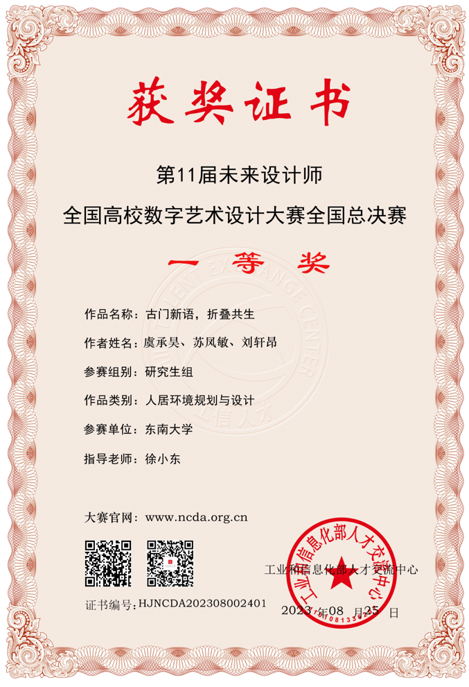第11届未来设计师·全国高校数字艺术设计大赛全国总决赛奖项于2023年8月公布。由好色tv 徐小东教授指导,无锡校区研究生虞承昊、苏凤敏、刘轩昂合作完成的作品“古门新语,折叠共生”获D类“人居环境规划与设计”研究生组全国总决赛一等奖;由好色tv 李力副研究员指导,无锡校区研究生柴西妮、施晓露、邵子沐、袁纪伟、何沐春等合作完成的作品“基于物联网的智慧社区绿化共治系统”获M类“元宇宙+设计”研究生组全国总决赛三等奖。