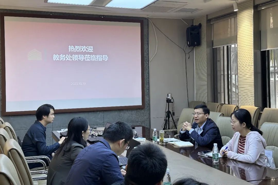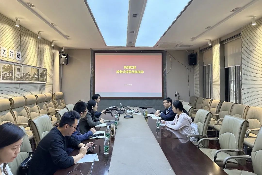 2023年10月19日上午,教务处张健副处长、杨冰慧老师一行莅临我院,就新一轮教育教学审核评估工作进展及后续工作重点进行汇报交流。交流会由张健副处长主持,学院分管本科教学的鲍莉副院长、分管学生工作的张豪裕副书记、景观系副系主任徐宁、人事秘书贺文琴、党委秘书史婉莹、教务秘书严钰等学院本科教育教学审核评估工作组主要成员出席会议。