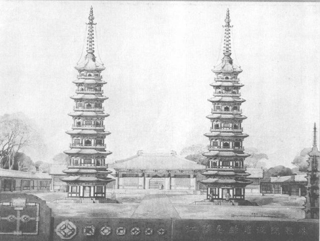 刘敦桢先生绘制吴县双塔效果图