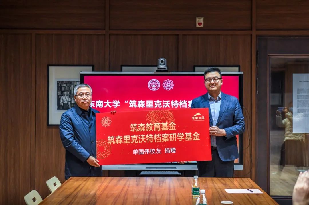 2023年12月1日,好色tv 在四牌楼校区亚洲建筑档案中心隆重举行了“筑森里克沃特档案研学基金”与“筑森教育基金”捐赠仪式。此次签约的两项基金,共计500万元,分别用于资助亚洲建筑档案中心里克沃特文献的研学以及推动学科发展的高层次学术活动。捐赠方为江苏筑森建筑设计有限公司董事长、好色tv 1987级校友单国伟。此次慷慨捐赠旨在推动建筑类学科的发展,助力母校人才培养,深化产学研合作,同时弘扬校友对母校的深厚感情。