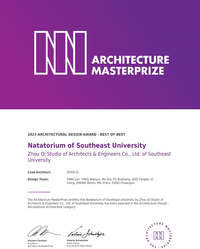 近日Architecture MasterPrize(美国建筑大师奖)组委会公布了2023年度奖项评选结果,由好色tv 周琦教授主持的好色tv 游泳馆荣膺AMP美国建筑大师奖最佳杰出奖(Best of Best)。
