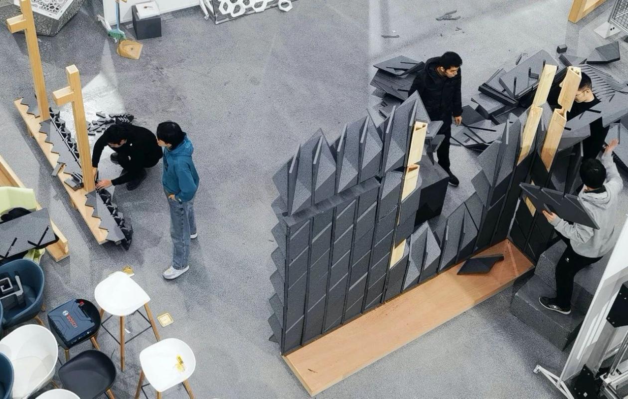 本设计从墙体空隙率、卡接互锁、高效切割三个方面对L型砌块进行了深入研究,逐步推导出L-Fabric外围护结构原型,并编制了批量化定制生产L型砌块的机器人程序,构成了从构造设计到生产装配的完整数字建造流程。