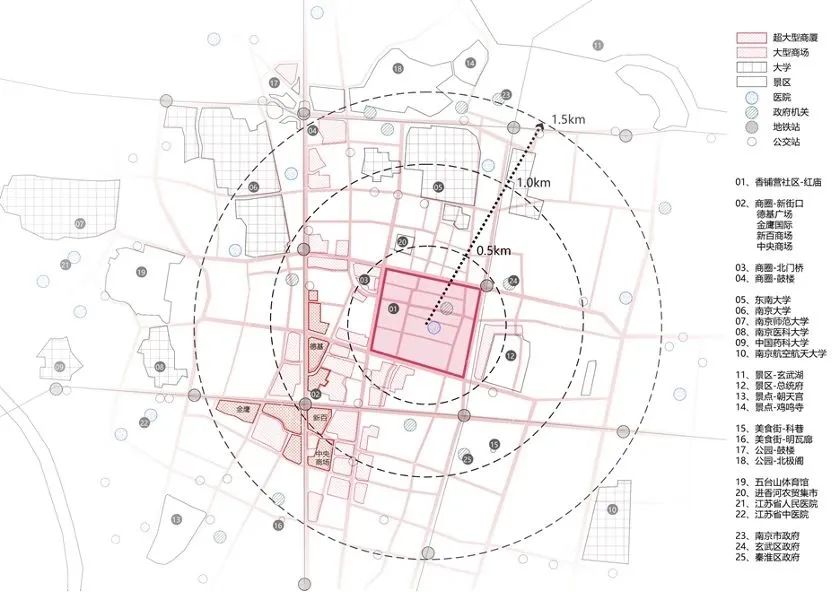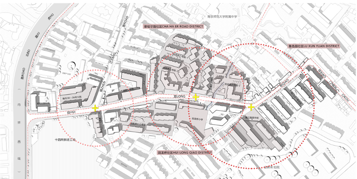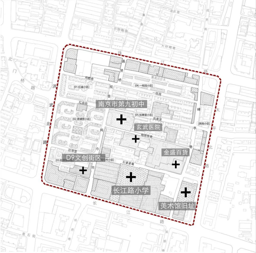 在老城区的腹地,15分钟步行可达范围内,红庙关联着丰富和活跃的商业、市政公共设施、历史和风景区等城市功能区域,红庙深度链接在南京内城市中心的城市环境中,也为城市所共享。