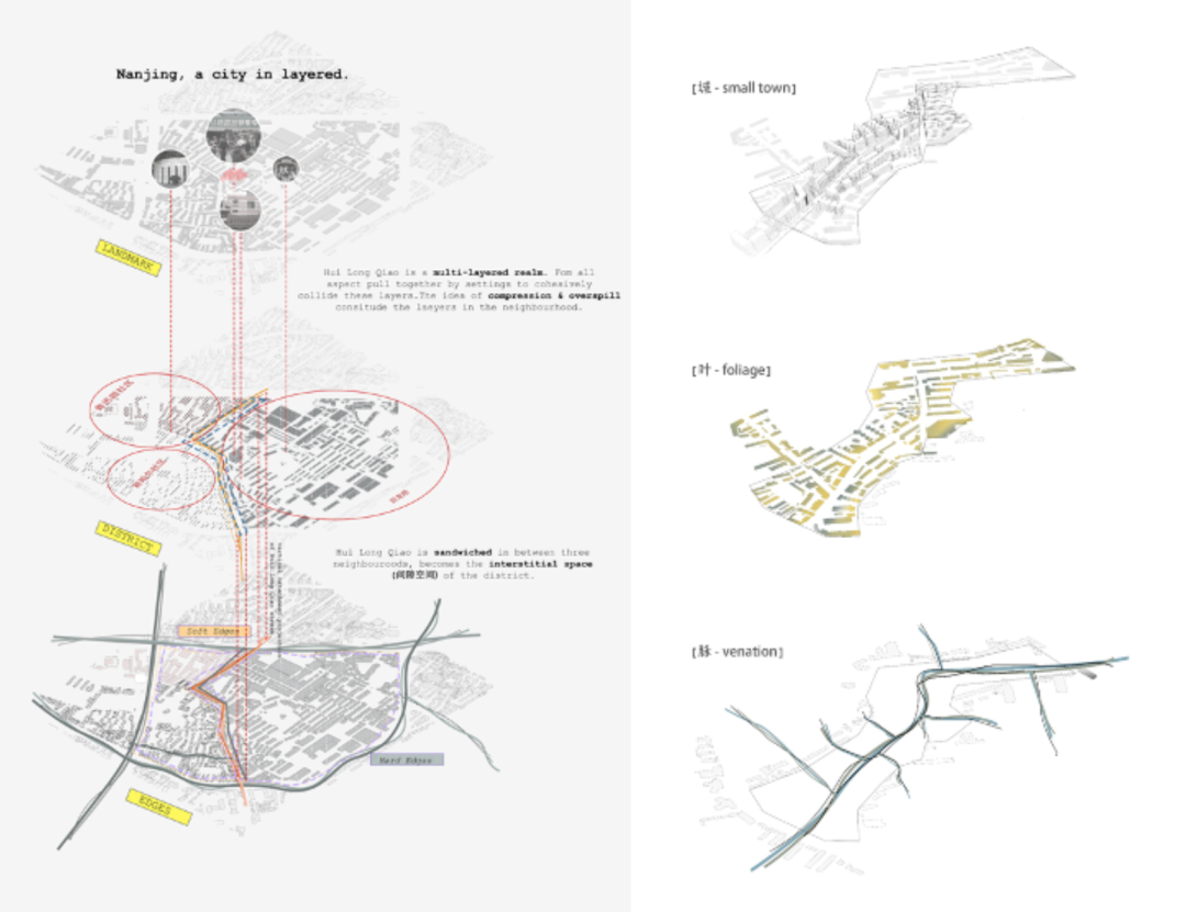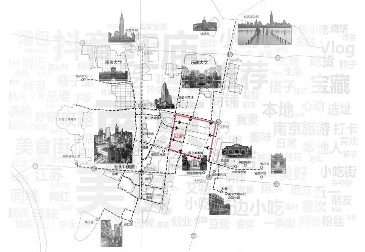 本案为研究型城市设计课题,要求学生通过详细的现场认知与调研工作,针对南京城市烟火圈的案例进行分析与研究。通过多维度的参与性工作,回溯城市烟火圈的历史发展过程及其构成原理,分析它们在社区环境中的影响与作用,提炼它们的构造原则与方法,同时为将来可能的优化提升提出建设性的观点。