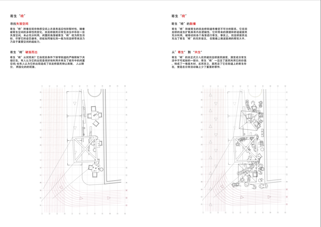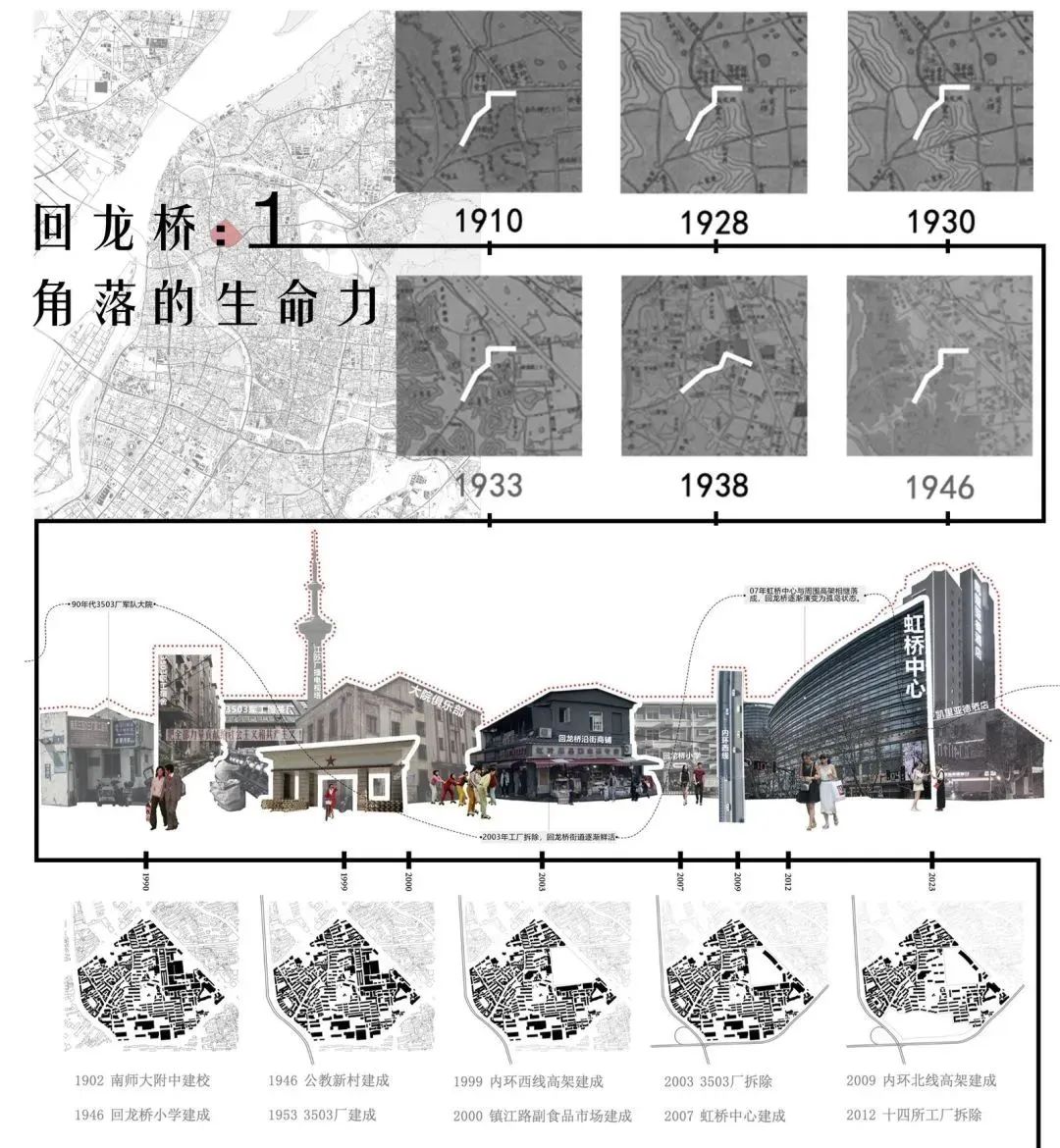 对于回龙桥这片土地,非正规生活空间的背后显现的是丰富多元的社群关系。空间的重构也是社会结构的重构。如果回龙桥的线性街道空间是城市生活的土壤,内向而宽松的空间管治是其生长条件,那么回龙桥的种子——坚实的内核也许是一种岁月积淀下稳固而包容的社会结构、时空交叠下的异质性融合、游离于边界外的非正式生长。这种空间的自主意识,与日常生活相关,因此才能持续更新、生生不息。这也是城市空间再生产的根本动力。而回观整个城市,还有无数像回龙桥一样被遗忘的城市角落已经在平凡的日常中长出了新芽。何为真正的公共空间?空间设计是否能生发真正的烟火气?当土壤失效,这颗新芽究竟是我们研究的样本,还是岌岌可危的标本?