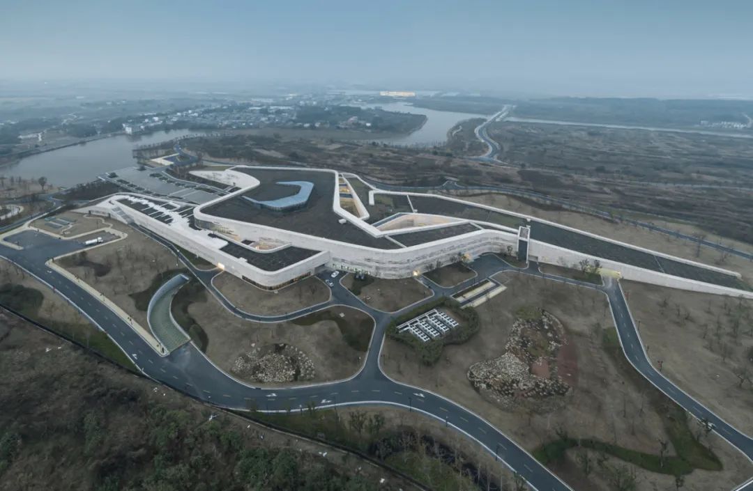 遗址博物馆的设计以考古研究为依据, 以遗产价值为导向,以真实性、完整性、永续传 承、多方受益四项原则为指导,遵循世界遗产保护 公约与遗址保护规划中确立的对场地原有地形地貌 进行“整体保护”与“最小干预”原则,最大限度 与遗址环境的岗地、水系及反映先民生活、生产的 农耕环境相协调,通过地形学设计路径,塑造大地 景观,将博物馆形体空间复归于大遗址的风土地脉 中。遗址博物馆综合容纳了展示陈列、文化交流、 文物库藏、考古研究、管理服务、后勤设备六大板 块功能;通过嵌藏于地形并喻显汉文化特征的“虬 龙潜野”形态和分区清晰、动线流畅的空间组织, 为海昏侯国遗址与文物的展示、馆藏、研究和交流 提供设施先进、功能完备的一流场馆,为中华传统 文化的保护、传承和光扬构筑又一处标志性、开放 性的公益场所。