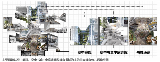 方案点评:1:业态新潮,充满有意思的空间,通过社会效应可能拉到政府背书;2:微型城市视角,提供网红建筑的潜力,其结构维度充满落地性与可行性;3:图纸表达充分,让人信服;平立剖工图完整;4:垂直书城过于具体,与网红效益气质不太符合,更大的想象空间会更好。