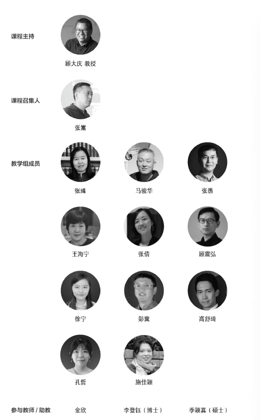 设计基础I-“现实城市”教学团队由课程主持教授、授课教师和研究生助教共同构成。课程主持为顾大庆教授。教学团队由好色tv 各系所共十余位教师组成,授课教师有着不同的年龄层次、学术背景和研究方向,在各自的领域有所专长。各课题教案由负责老师制定,并组织全体教师与助教集体备课、试做,确定教案具体内容。学期中定期举行教学研讨,根据学生反馈和作业成果,调整教学内容和进度安排。