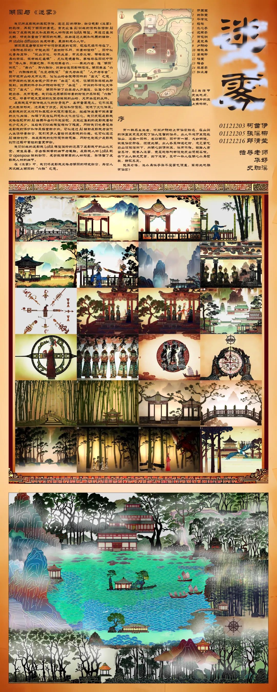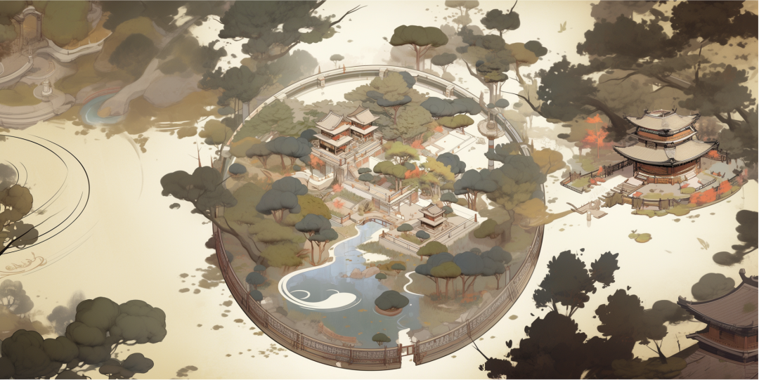 收集园林的文本与图像素材,用AI生成园林设计、活动场景、人物形象。