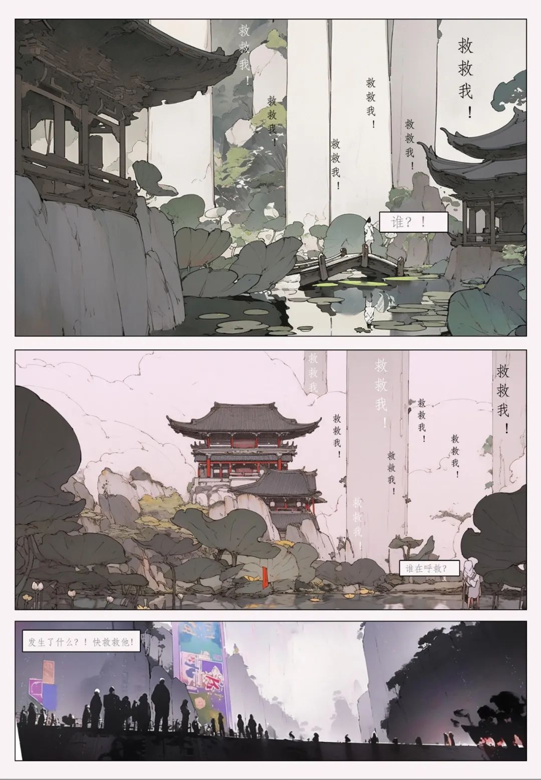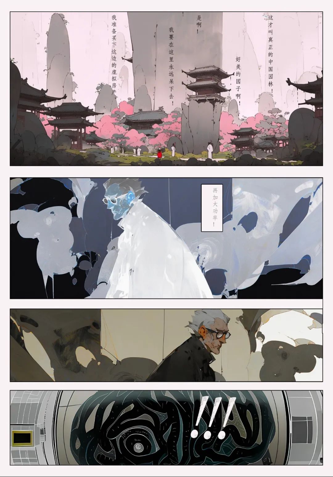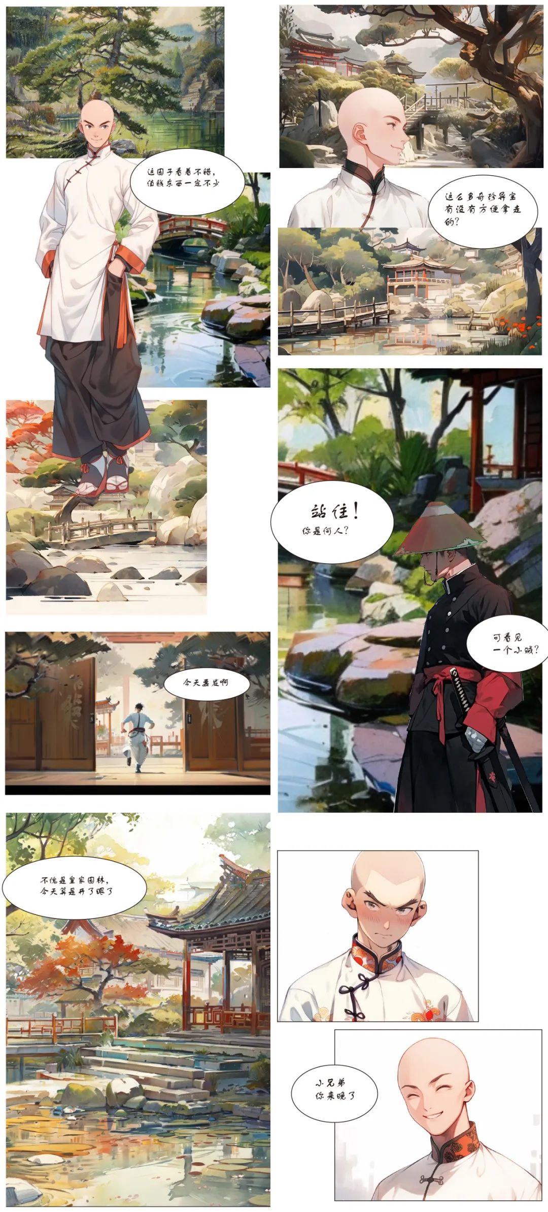 构思一个发生在园林里的故事,用AI工具生成故事板/漫画/连环画/长卷。