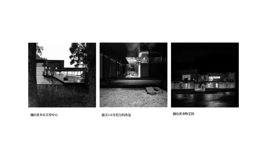 第四位汇报的建筑师是“有声建筑”联合创始人刘畅,他主要分享了3个改造加建类的项目,也回应了当下中国建筑的一种趋势。第一个项目是前汾溪乡村美育中心,项目需要把工厂和粮仓场地改造为一个乡村美育中心。在回应解决场地混杂状态与功能需求之间的矛盾时,建筑师受到当地的廊桥建筑类型的启发,依据这种建筑原型结合新的结构,推演出了一系列小房子。第二个项目发生在杭州的城市环境中,试图对原本消极的剩余空间进行一种重新的塑造。第三个项目以乡野艺校的模式介入乡村,将建筑重新嵌入一种和自然的关系中。