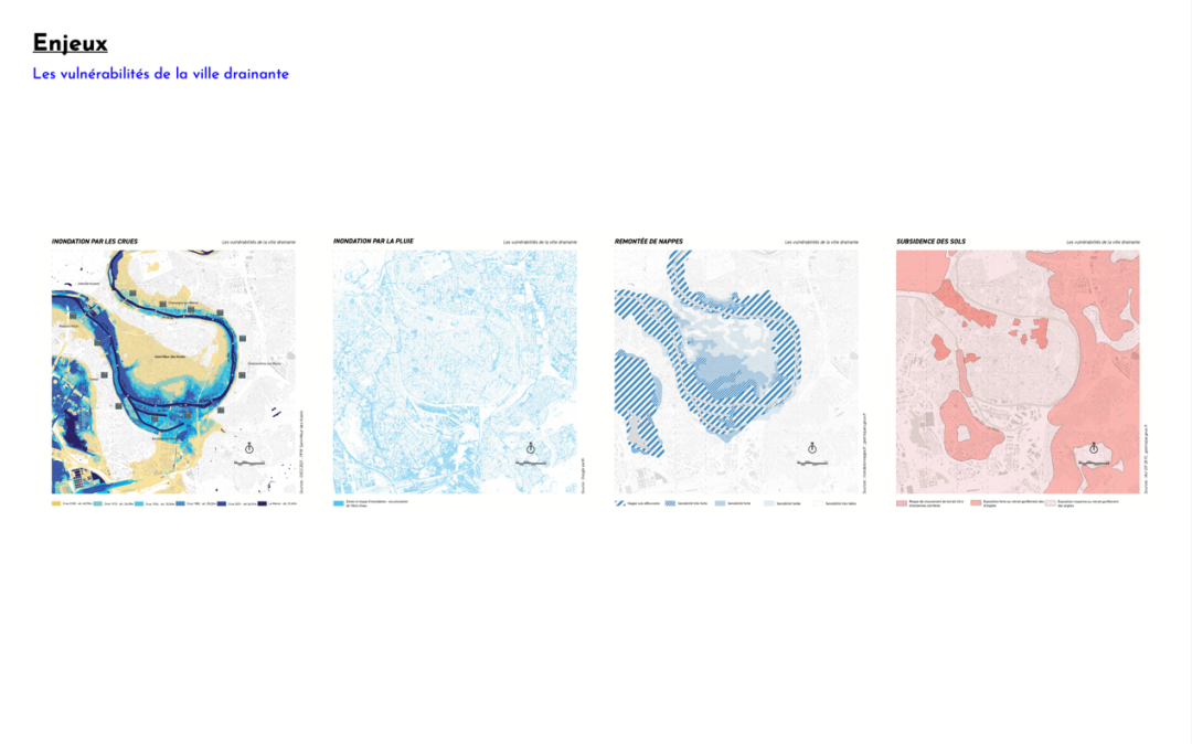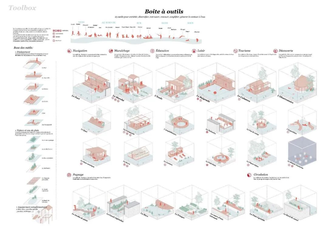 第二组汇报的是Marie Ducroc,她从小作为木匠女儿的成长经历和在凡尔赛学习建筑的经历帮助她在实践中能够了解项目的真正细节。她汇报了毕业设计项目“流通:海绵城市的新城市地理”,城市在洪水管理方面有重大的利害关系,因此,项目对河流流域的水管理与景观建筑类型的深入研究,以专业技术回应对气候问题的认识。