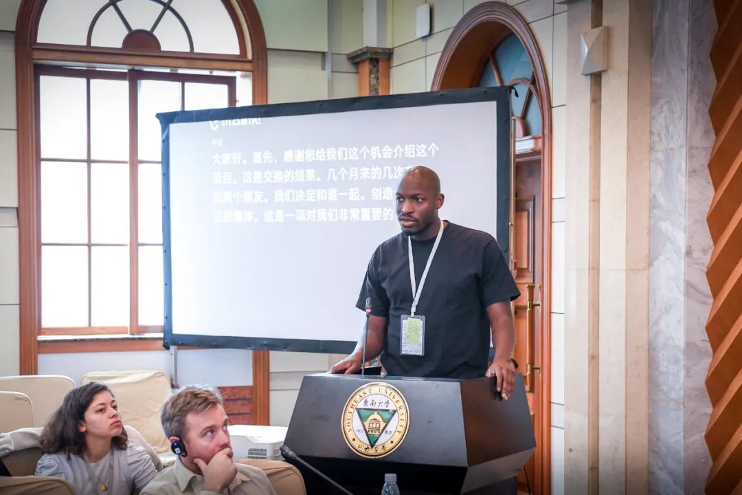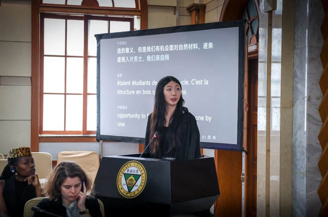 接下来是4组中国学生的演讲,首先是来自中国美术学院建筑艺术学院的卢心玥、陈沛印、王汝宁,汇报始于美院本科课程的学习经历,对自然建造的关注使同学有机会面对自然材料,并亲自用手实验,这些宝贵的经验被转化运用在“弹弹居”项目的设计中,该项目运用竹材的特性在村落中建造一个弹性的平台,获得了“第三届全国高校竹设计建造大赛”二等奖。