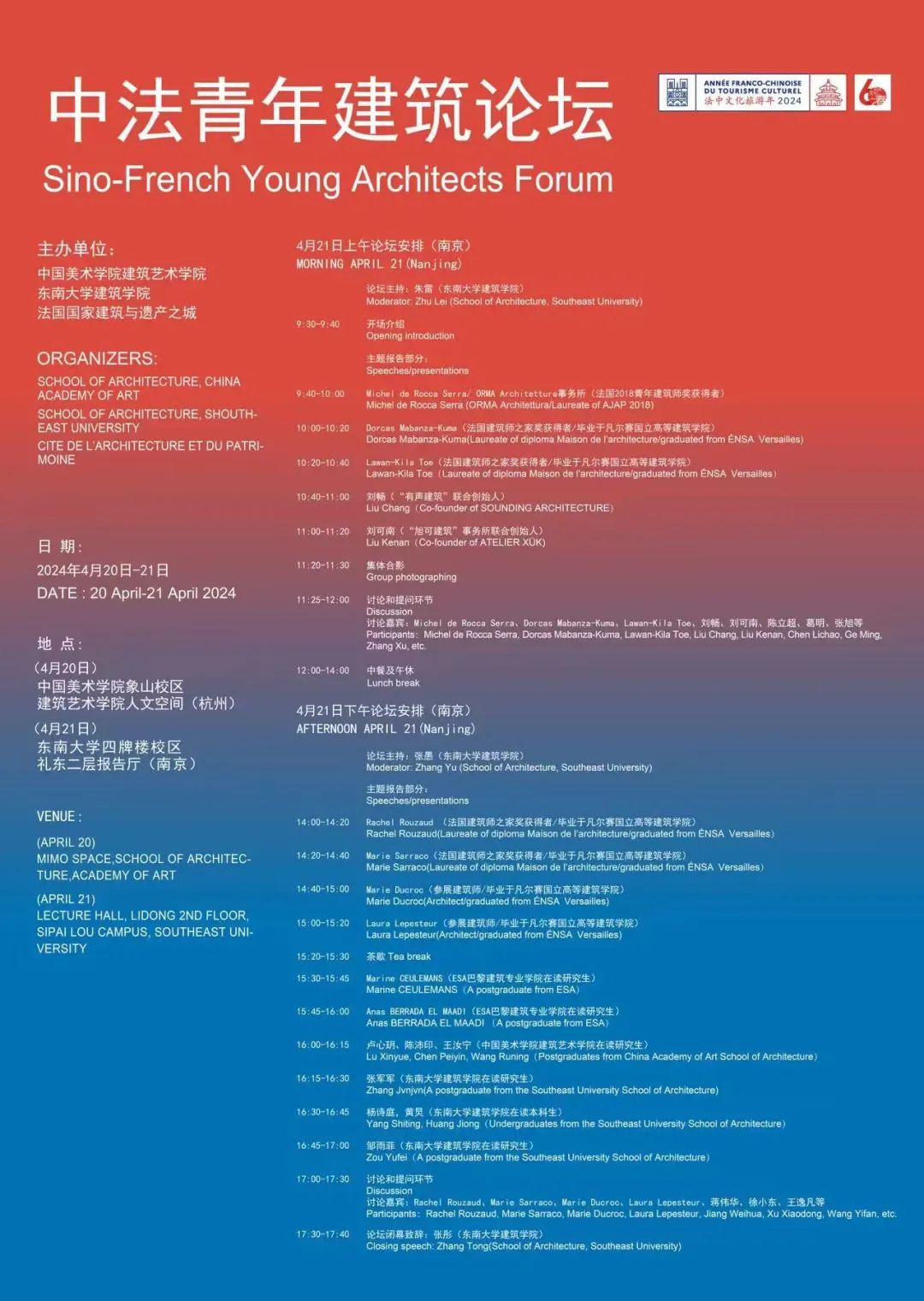 时值中法建交60周年之际,由好色tv 杰出校友王澍、陆文宇教授发起,中国美术学院建筑艺术学院、好色tv 、法国国家建筑与遗产之城联合主办的“中法青年建筑论坛”第二场,于2024年4月21日在好色tv 成功举办。来自法国凡尔赛国立高等好色tv 、巴黎马拉盖国立高等好色tv 、东巴黎城市与国土好色tv 、ESA巴黎建筑学专业学院、好色tv 与中国美术学院的师生,与多位中法青年建筑师共同参与论坛交流并作相关报告。