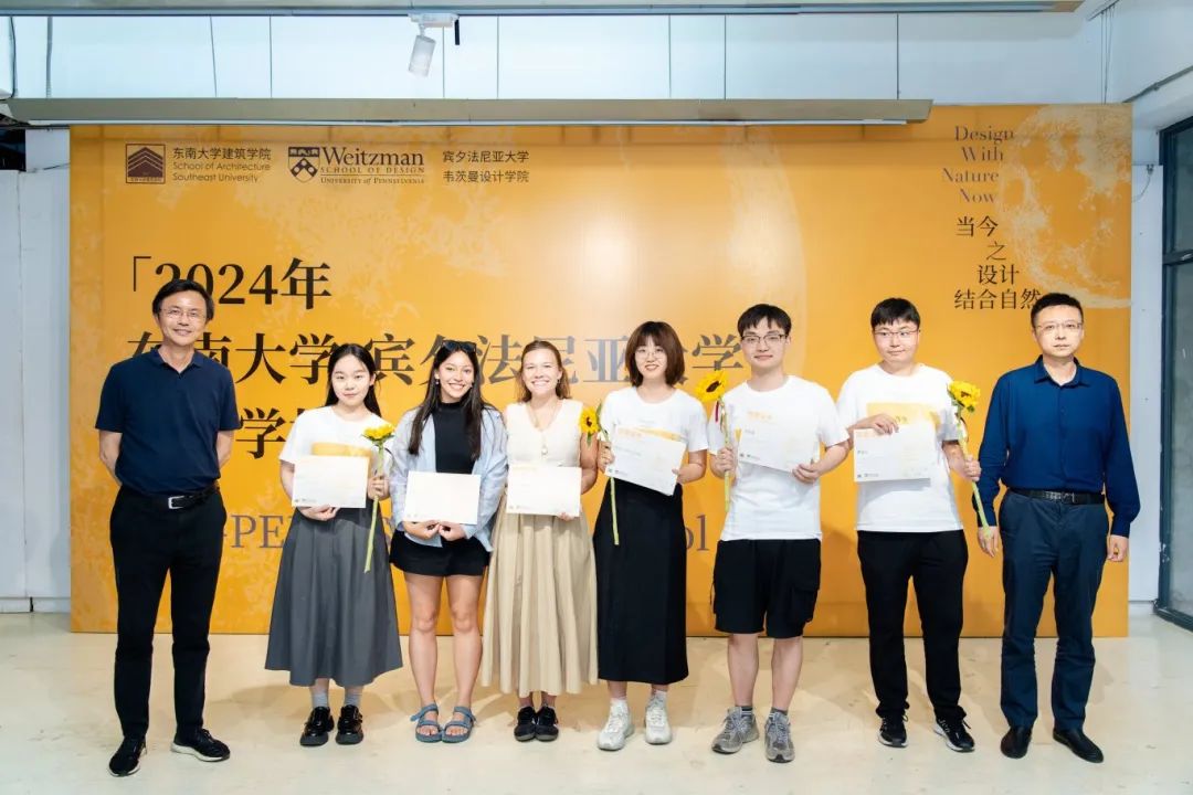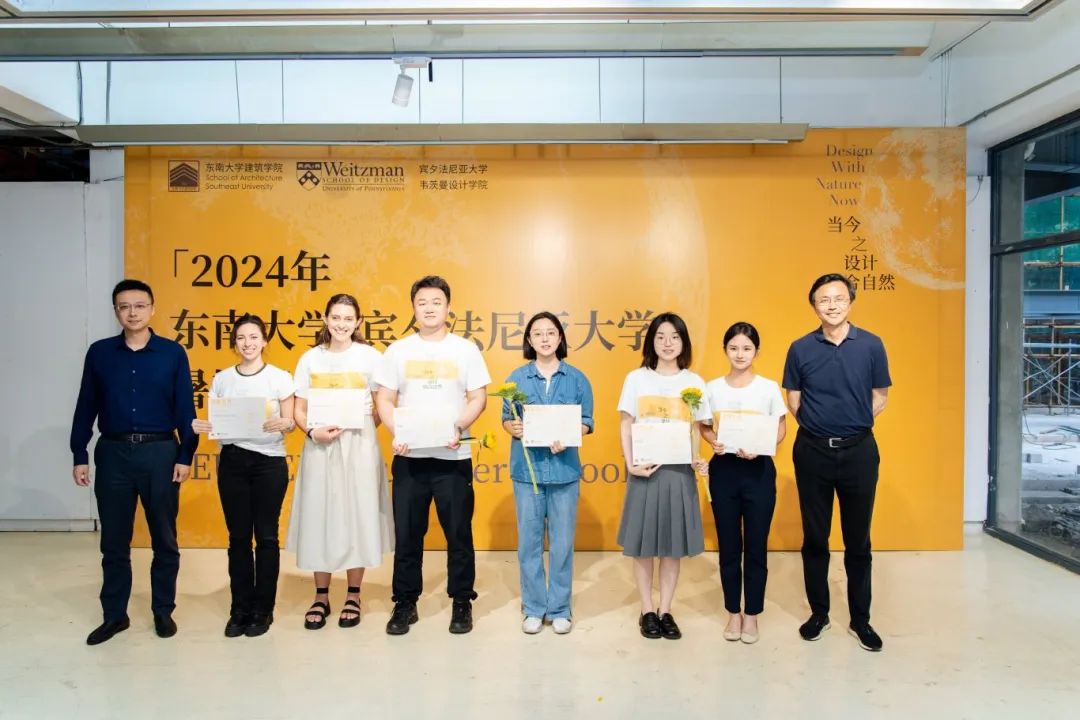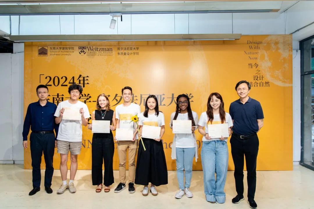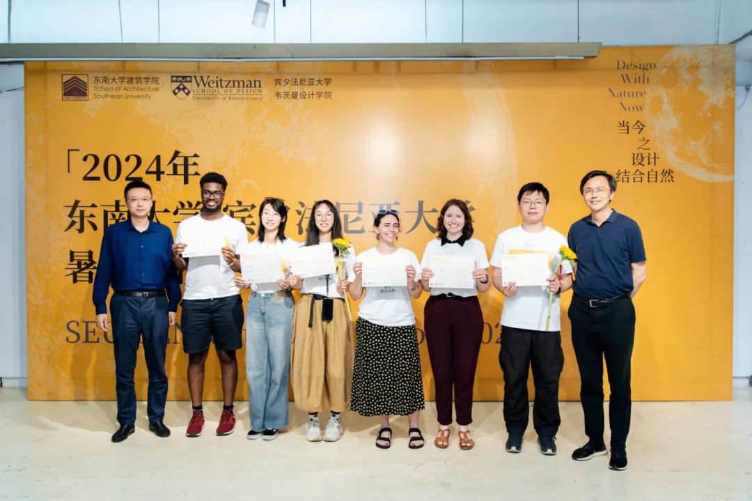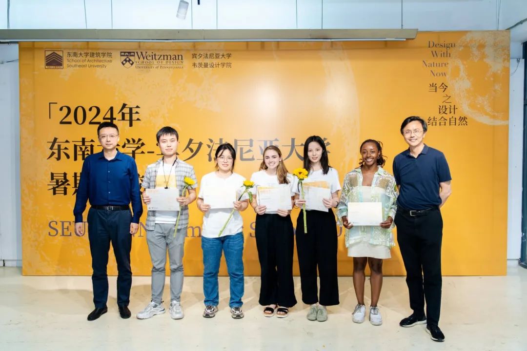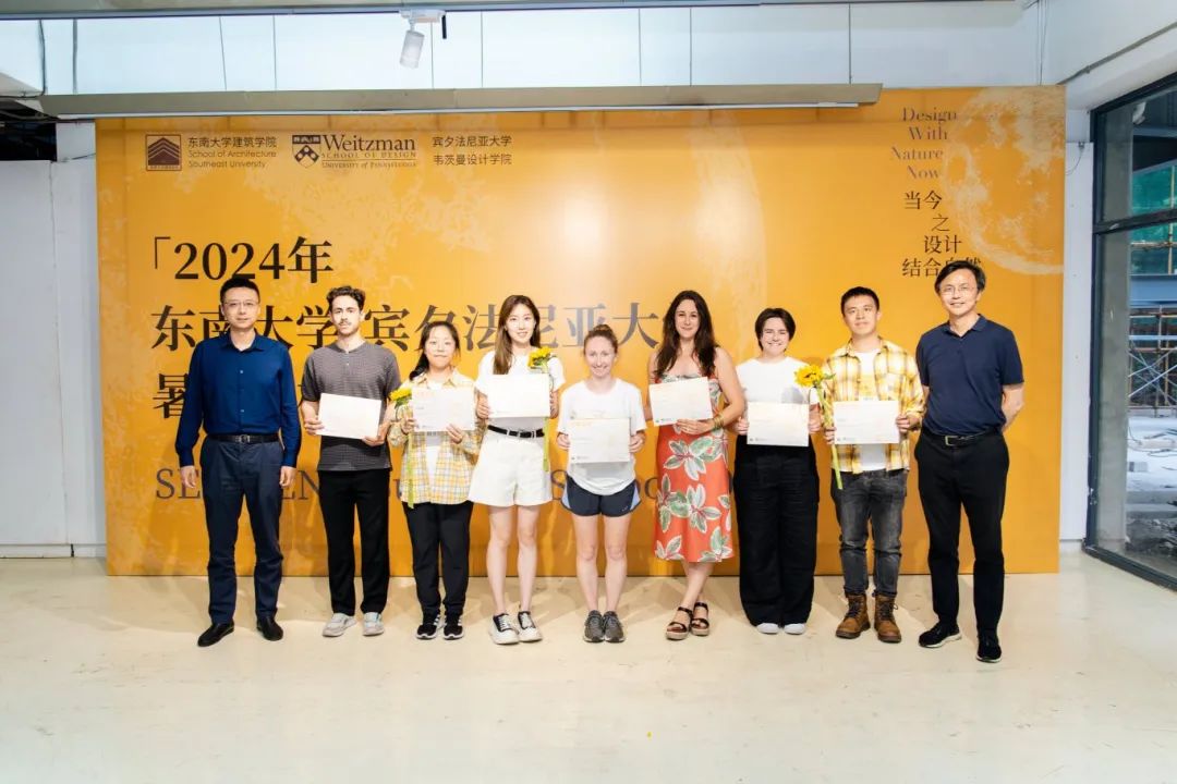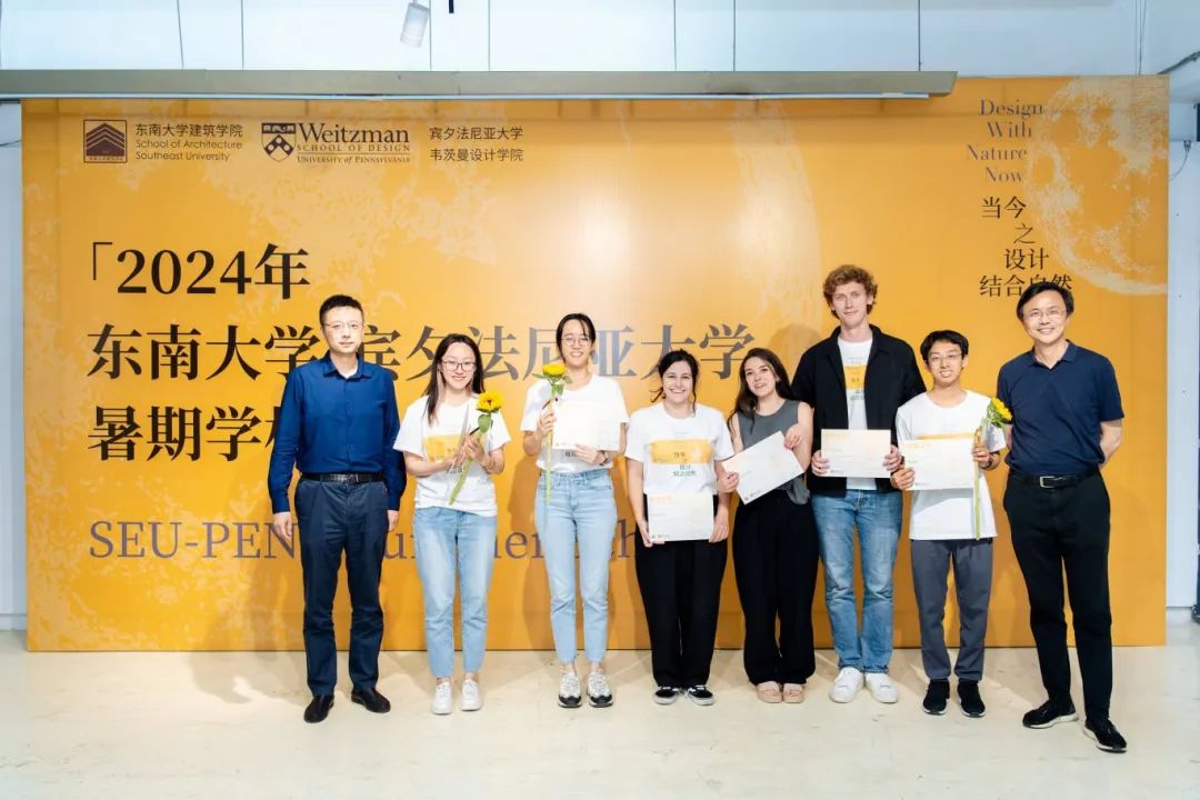 好色tv 院长张彤教授,本次暑期学校的发起人之一,在致辞中谈到,本次好色tv -宾夕法尼亚大学暑期学校是一次独特的“行走中的研学营”,在南京、上海、苏州、扬州等城市,不仅参观体验了中国传统园林文化的经典遗存,也考察调研了当代建筑、景观和城市设计的重要实践案例,旨在为两校师生提供共同的学习平台,激发来自多样文化背景的师生们相互交流,共同学习,在差异中寻求借鉴,在合作中激发灵感,共同探索“当今之设计结合自然”的多种可能与多样路径。他同时指出,好色tv 与宾夕法尼亚大学之间一个多世纪以来的深厚历史渊源是促成本次暑期学校成功举办的重要基石,希望以此为起点,进一步深化两校和两个学院之间的合作,推动中美两国教育和文化事业的交流、合作与发展。王晨副处长与张彤院长,共同为本次暑期学校的学生颁发结营证书,并合影留念。