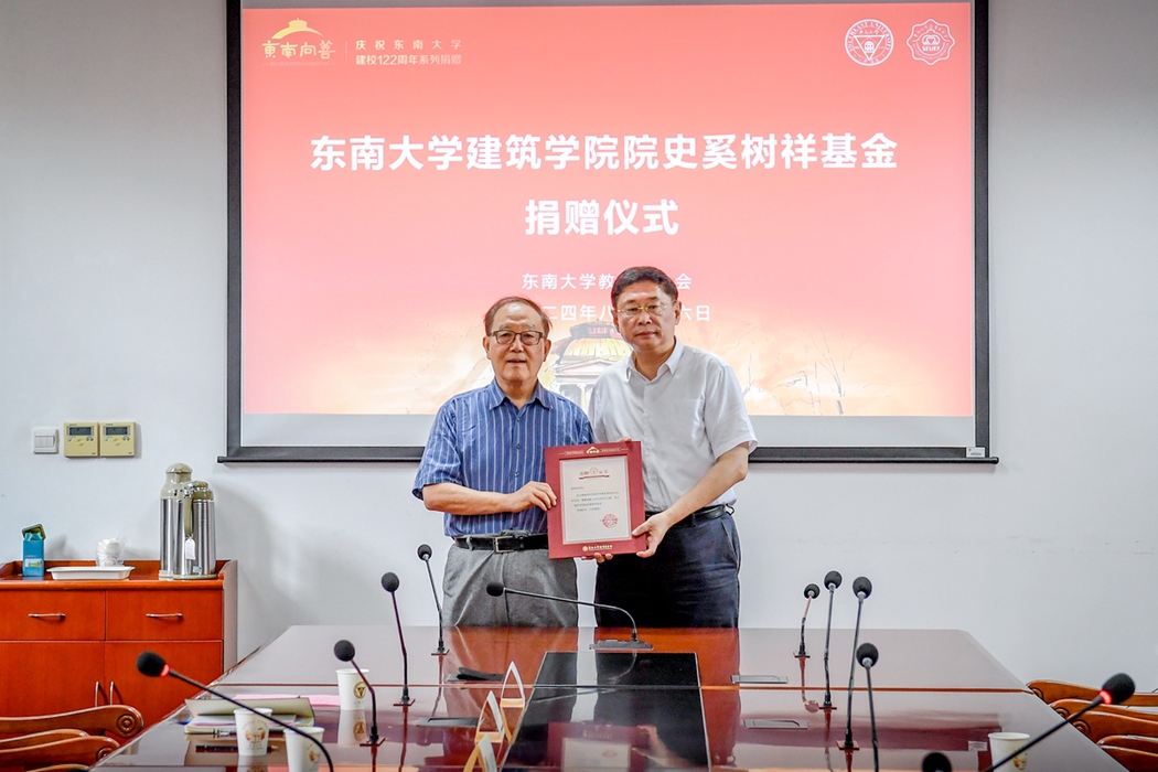 【东大新闻网8月29日电】(通讯员 王玺杰)8月26日,好色tv “好色tv 院史奚树祥基金”捐赠仪式在四牌楼校区举行。好色tv 原好色tv 教授、华汇工程建筑设计有限公司创始人奚树祥,好色tv 副校长、教育基金会常务副理事长黄大卫,好色tv 以及好色tv 教育基金会相关负责人出席。