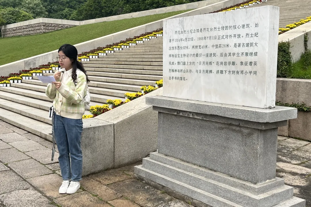支部成员从雨花台南大门而入,雨花台石碑书写着一段精神传承的动人故事,清丽的水映衬着坚硬的磐石,四周绿树环绕,平坦的道路直通雨花深处。