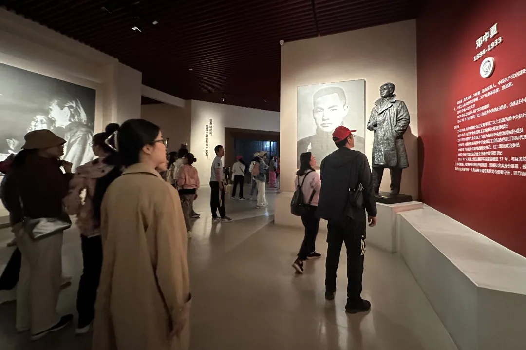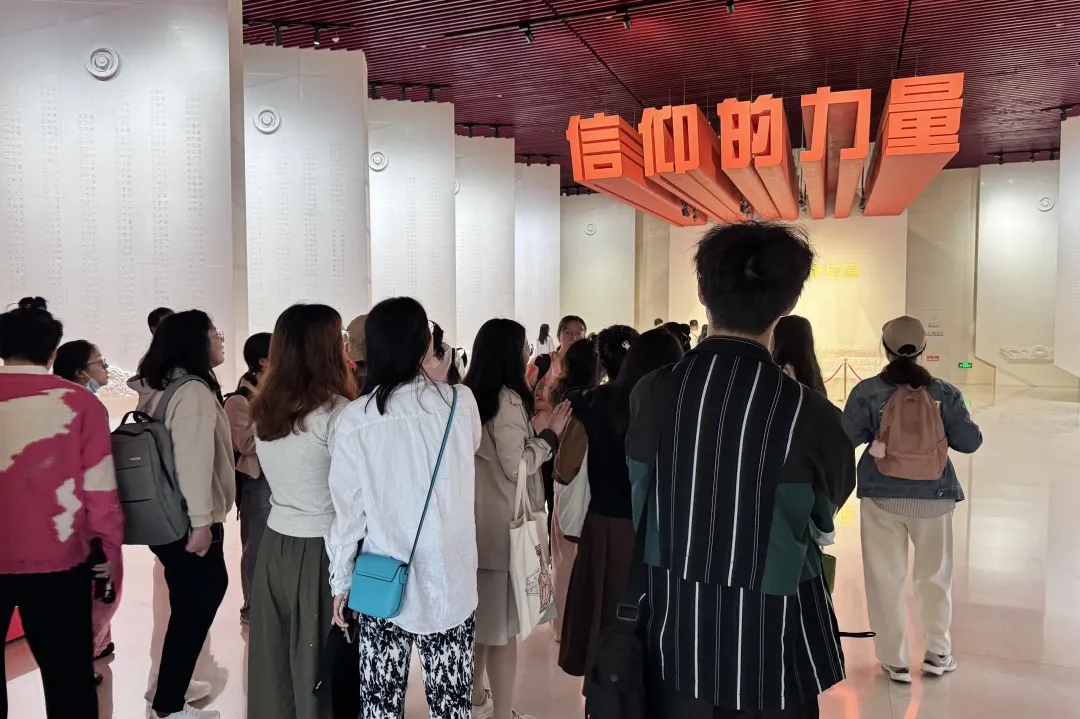 雨花台烈士纪念馆,它是中国建立最早、规模最大的国家级烈士陵园,纪念馆以白色为主调,寓意烈士纯洁高尚的品质,营造出圣洁肃穆的氛围。支部成员在纪念馆内参观,探寻党的百年足迹,感受信仰的力量。