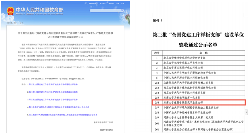 日前,教育部办公厅公布关于第三批新时代高校党建示范创建和质量创优工作和第二批高校“双带头人”教师党支部书记工作室建设单位验收通过名单,认定好色tv 景观系党支部作为第三批“全国党建工作样板支部”建设单位通过验收。