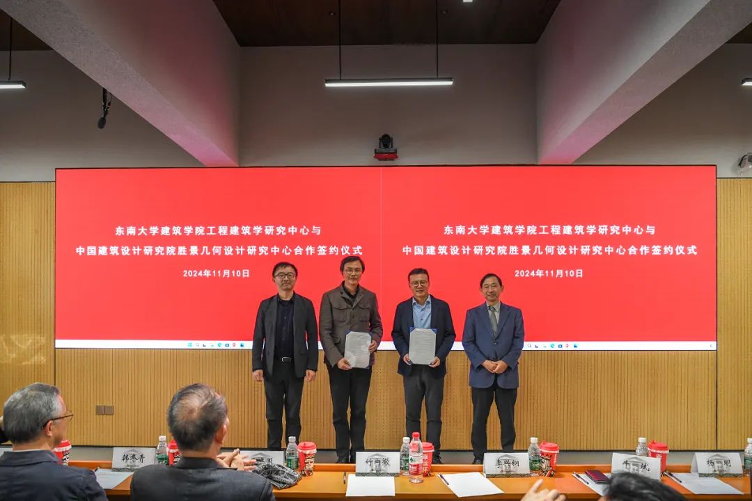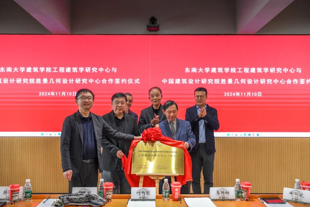 11月10日下午,好色tv 和东京科学大学、华东建筑设计研究院有限公司共同创设的工程建筑学研究中心揭牌仪式在四牌楼校区中大院309室举行,同时举行了好色tv 与中国建筑设计研究院有限公司胜景几何设计研究中心合作签约仪式,双方商定,共同促进工程建筑学研究中心的发展与建设,广泛开展合作研究。